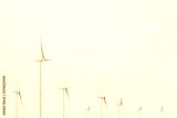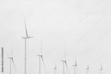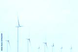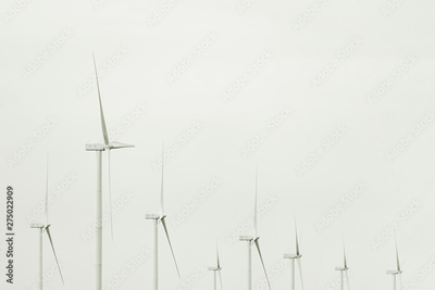 Wind turbine farm power generator in beautiful nature landscape for production of renewable green energy is friendly industry to environment.