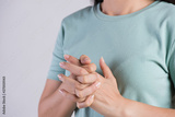 Healthcare and medical concept. Close up woman cracking knuckles.