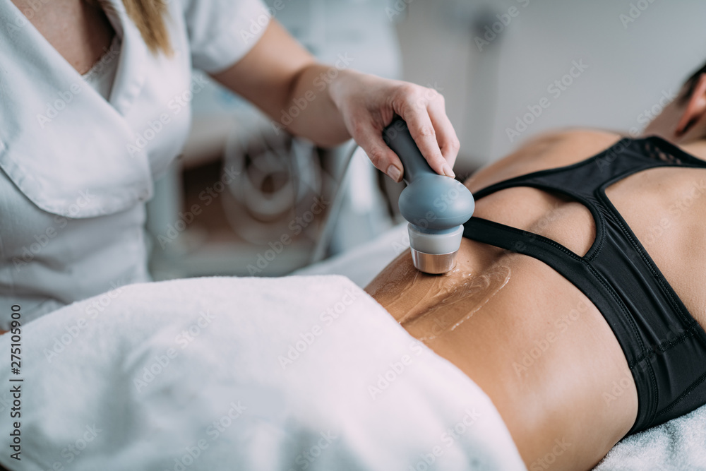 Ultrasound in Physical Therapy. Therapist Using Ultrasound Applicator on a Patient’s Lower Back