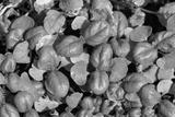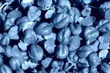 Closeup top view of green young sprouts of vegetables growing in soil