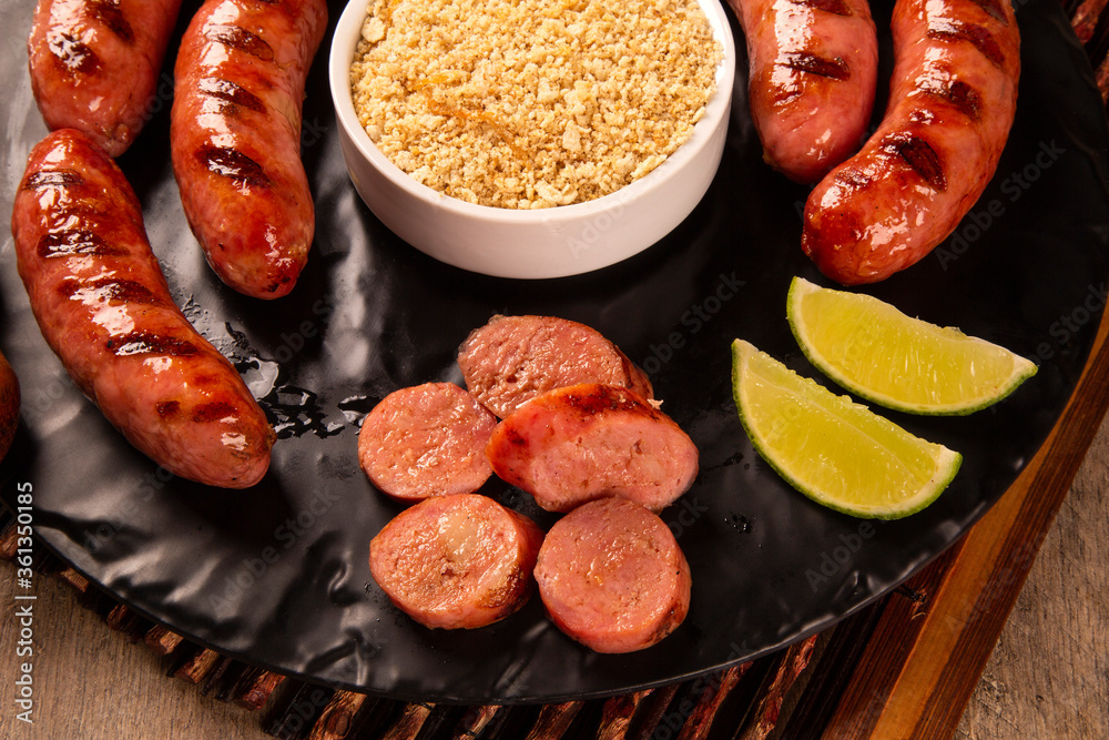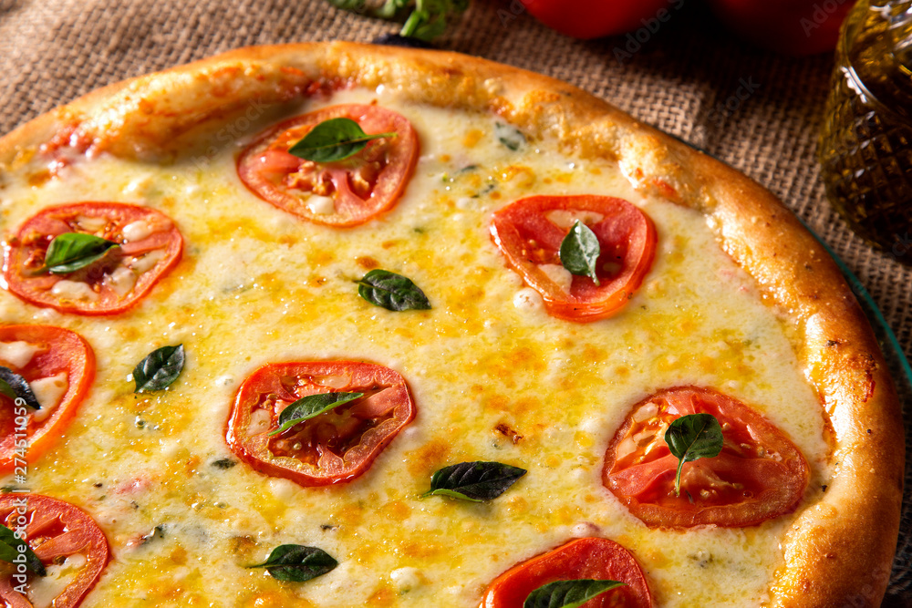 brazilian sweet pizza with hazelnut cream and strawberry on wood background.