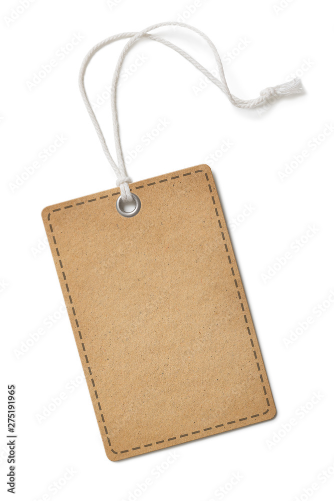Blank old paper label or cloth tag rectangle with round corners isolated