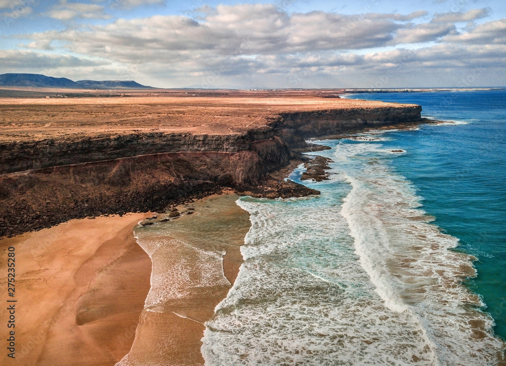 Beautiful panoramic birds eye view on ocean waves, Fuerteventura