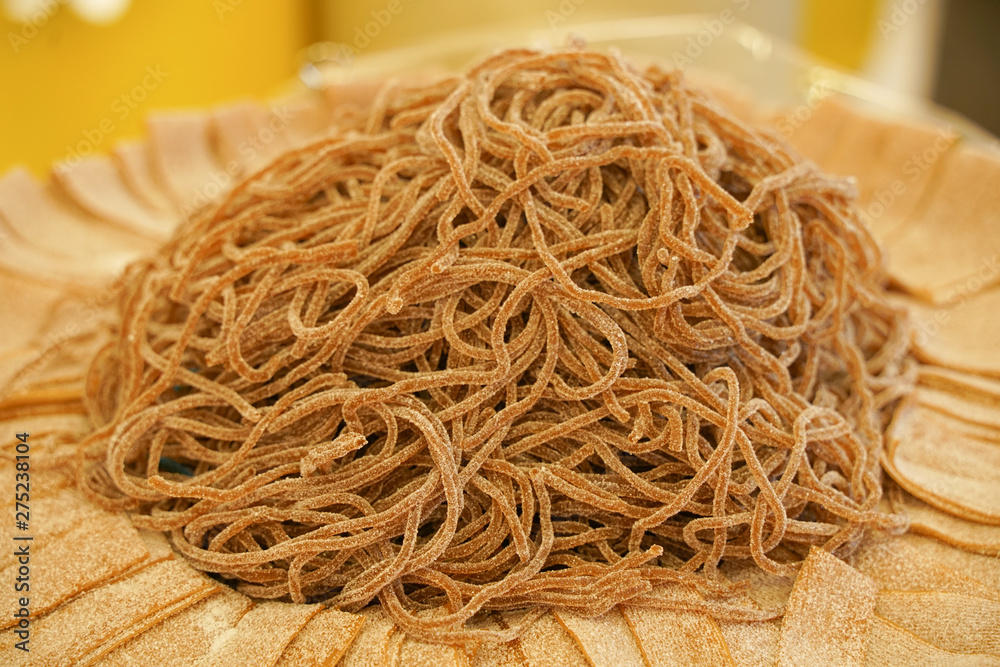 delicious multi-colored fruit marmalade. unhealthy bright candies in bulk. different jelly photo close. tasty sweets in the candy shop. nobody.