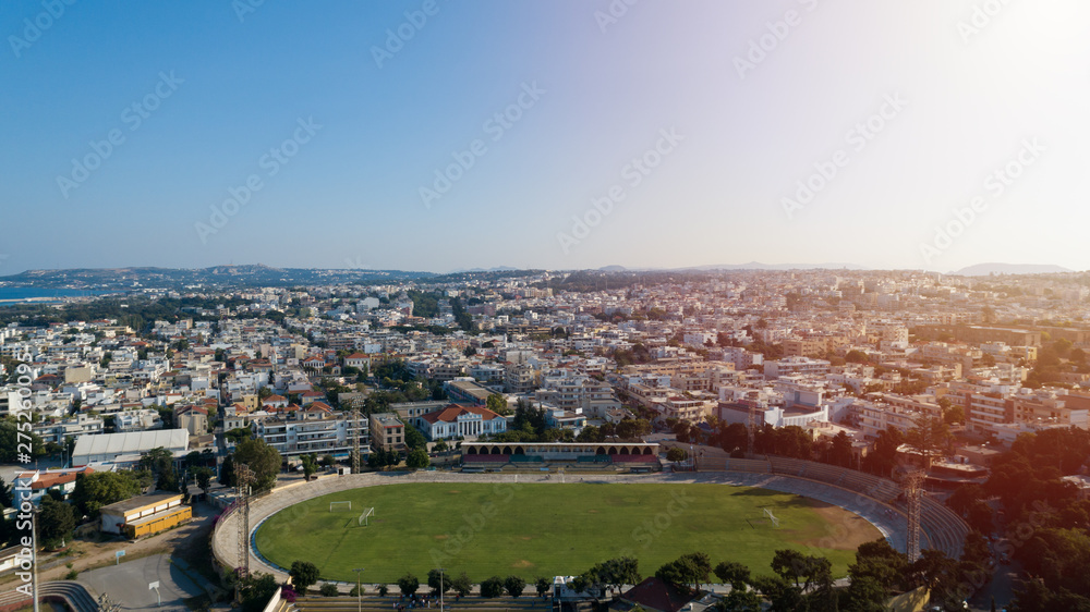 Aerial view of Rhodes island old fortified town, a popular tourist destination, Dodecanese, Aegean, Greece