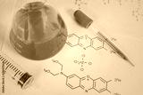 Laboratory test tube with dropper and chemical formula background , science concept.