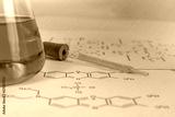 Laboratory test tube with dropper and chemical formula background , science concept.