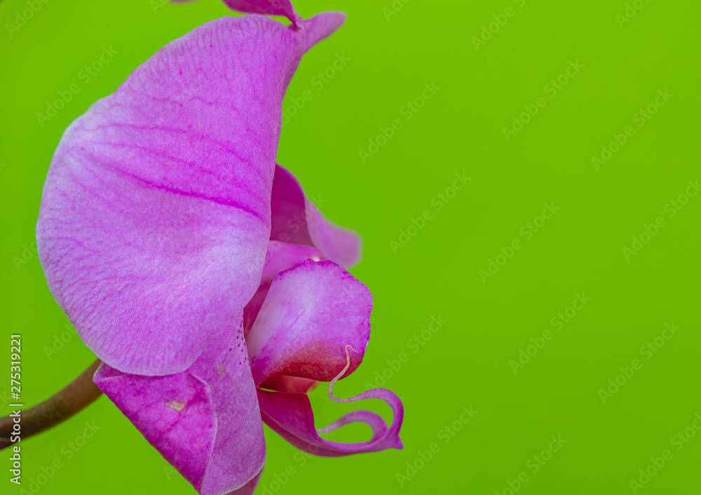 Close Up Of A Blooming Orchid Flower on yellow background