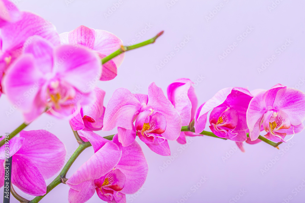 Close Up Of A Blooming Orchid Flower on yellow background