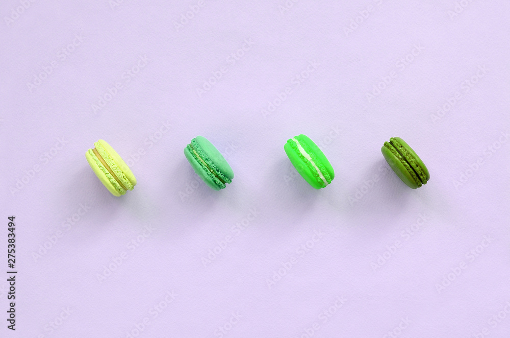 Dessert cake macaron or macaroon on trendy pastel lilac background top view