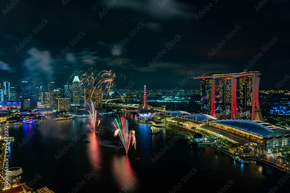 Singapore national day fireworks celebration at Marina Bay cityscape