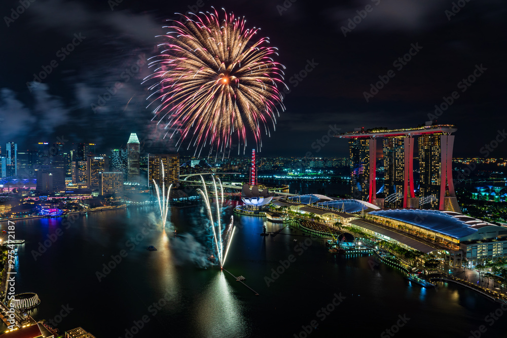 Singapore national day fireworks celebration at Marina Bay cityscape