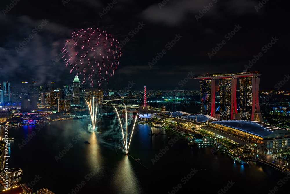 Singapore national day fireworks celebration at Marina Bay cityscape