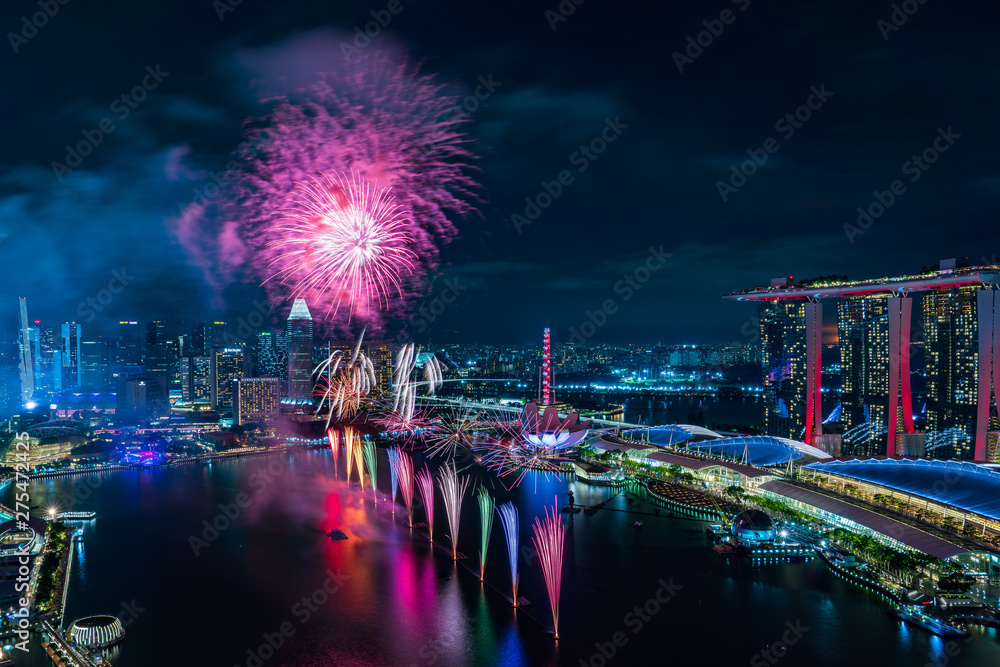 Singapore national day fireworks celebration at Marina Bay cityscape