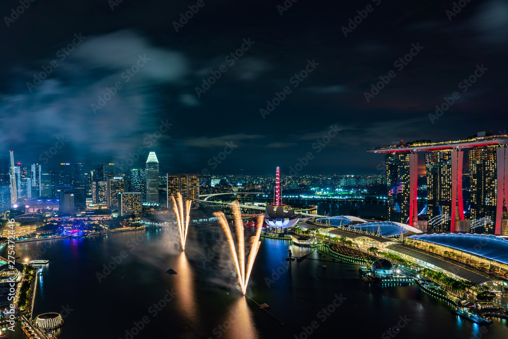Singapore national day fireworks celebration at Marina Bay cityscape