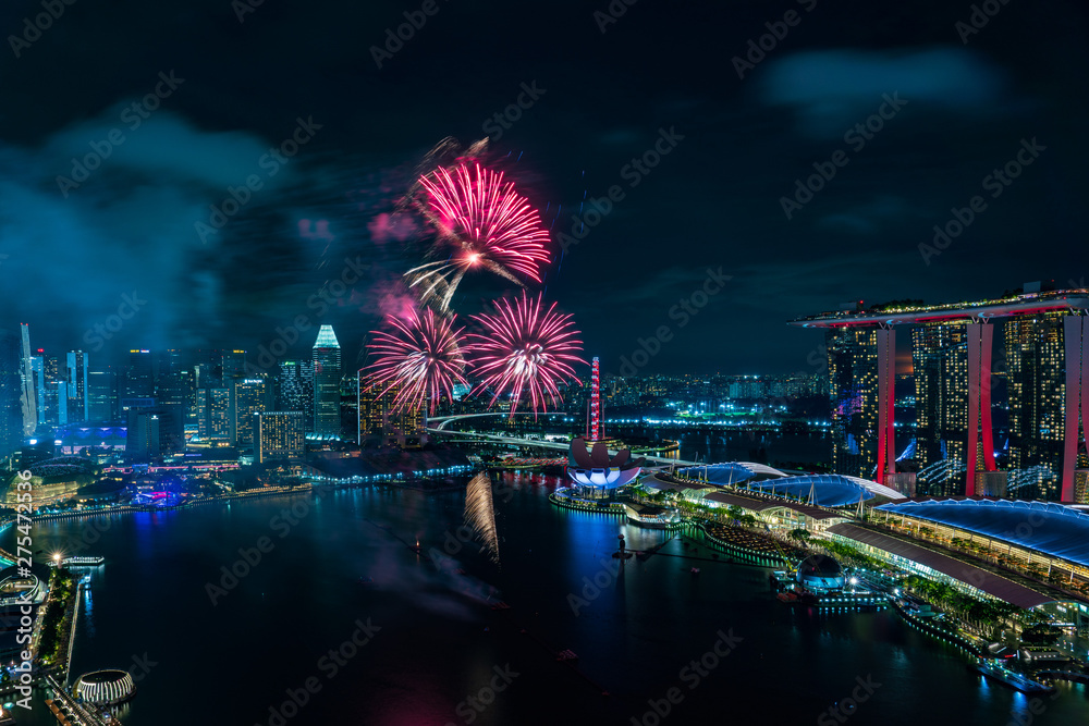 Singapore national day fireworks celebration at Marina Bay cityscape
