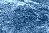 Vintage cyan background. Rough painted wall of hazel color. Imperfect plane of brown colored. Uneven old decorative toned backdrop of blue tint. Texture of azure hue. Ornamental stony surface.