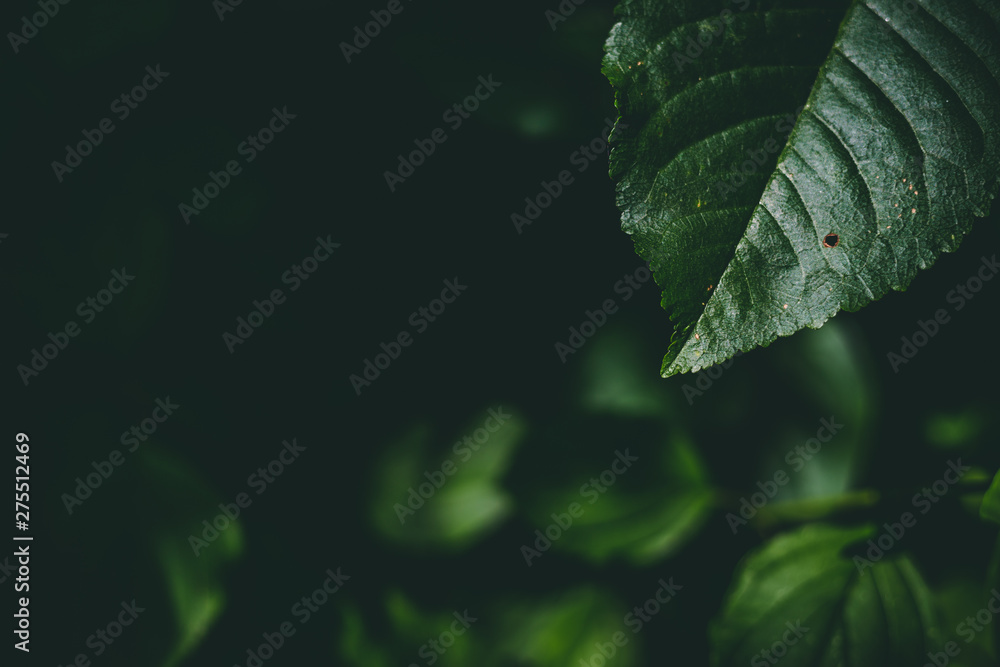 Dark green nature background of detailed sharp leaf with copy space – Beautiful wild vegetation in low light conditions
