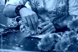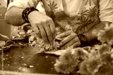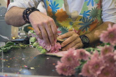 Hands of a man which in a beautiful bouquet of flowers. Decoration