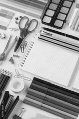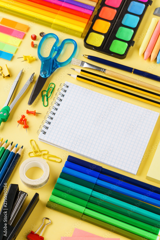 Set of colorful stationery and supplies for school.