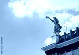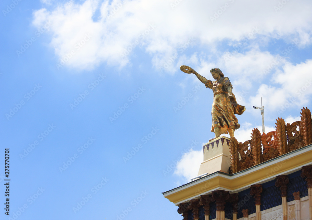 Statue of soviet girl with wreath on blue sky in Moscow, Russia