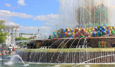 Stone Flower fountain summer day view on sunny summer day in Moscow, Russia
