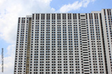Building facade fragment of multi story old soviet architecture in Moscow, Russia