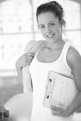 Pretty girl prepared for workout in gym