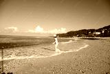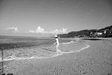 Child play at sea coast. Little boy at the beach, Child look a waves in the sea