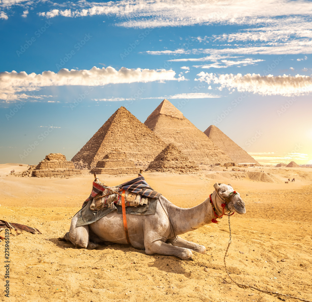 Camel near pyramids