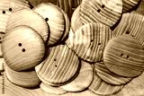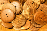 large wooden buttons for sale at the market closeup