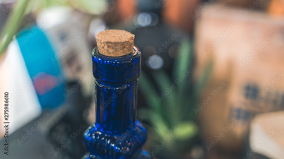 Blue Glass Bottle With Wooden Cork