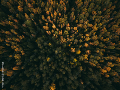 Aerial Photo of a colored forest in autumn.
