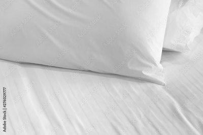 white soft pillow on the bed room interior background