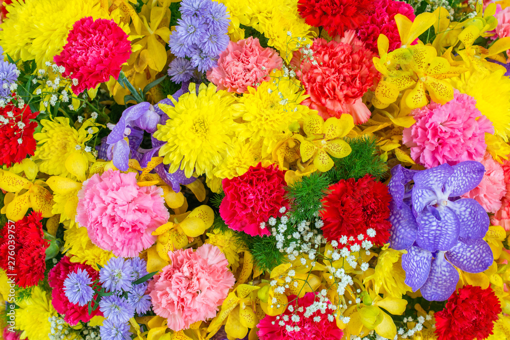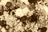 Abstract background with bunches of different varieties of colourful flowers.