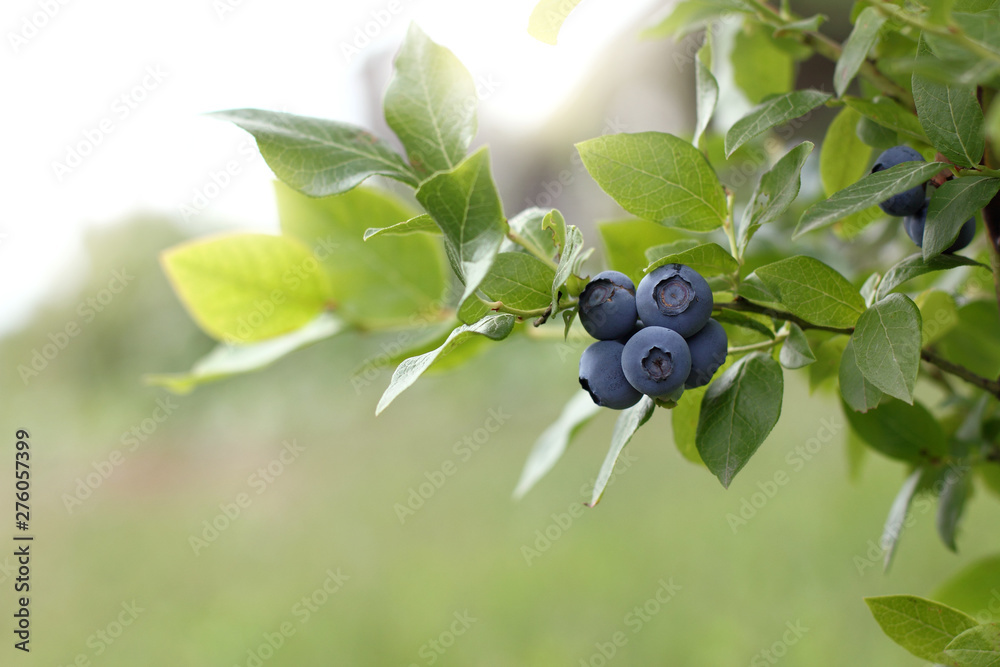 clusters of garden blueberries on a branch. harvest of large summer berries