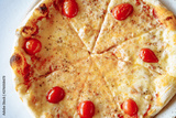 Hot tasty pizza Margarita with tomatoes on a white plate.