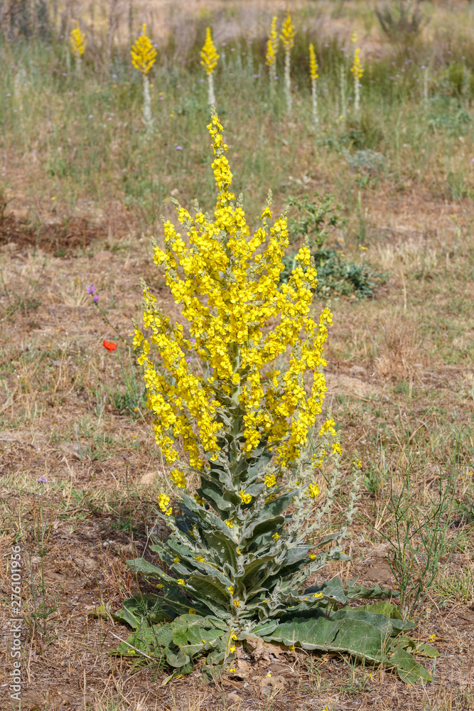 Verbascum pulverulentum. Gordolobo. Planta con flores amarillas.