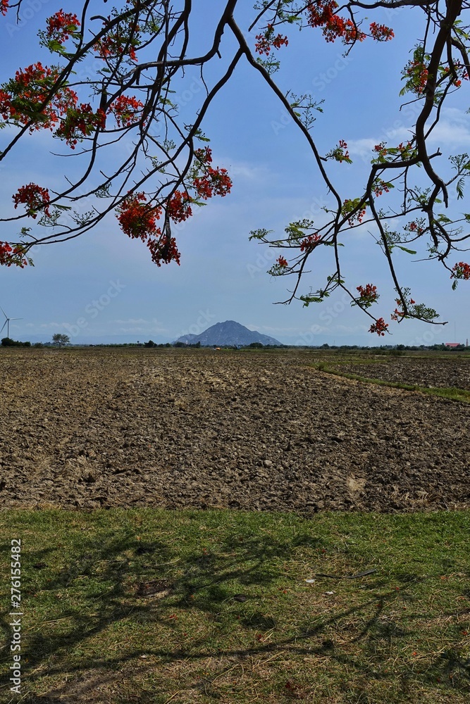 landscape of wind turbines field