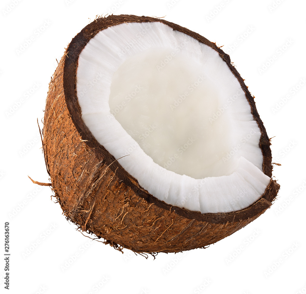 half coconut isolated on white background clipping path