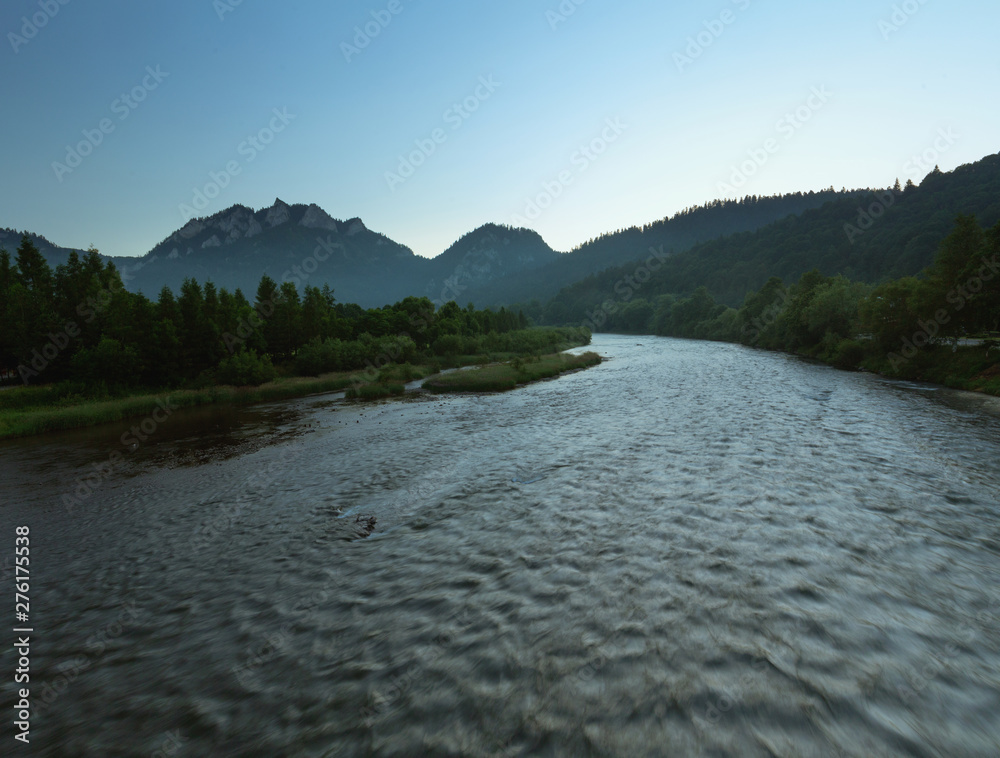 Mountain landscape. Pieniny, Three Crowns Peak on the Dunajec River at dawn