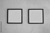 Empty picture frames on vintage yellow walls.