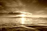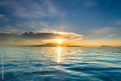 Beautiful beach sunset with blue sea and golden light sky cloud background