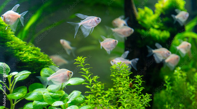 Small aquarium fish in the aquarium. Pets.