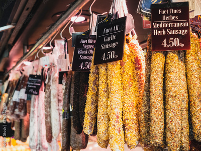 Herb Sausage Meat products sell in Europe market local food Gourmet Travel