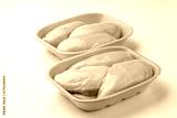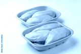 Raw chicken fillet package isolated on white background.