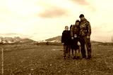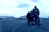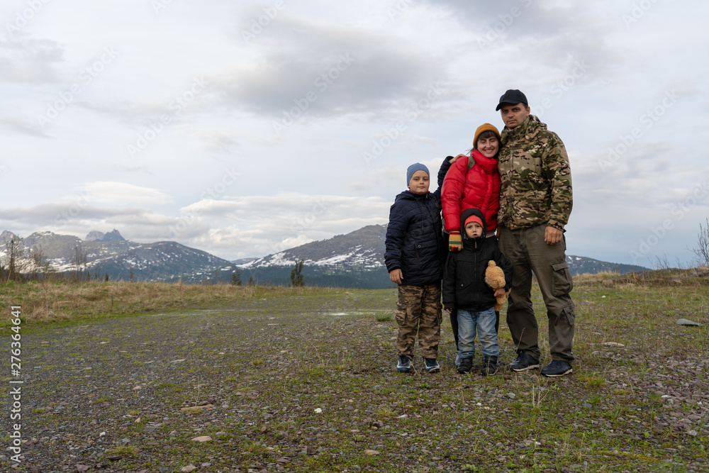 family hikers in the mountains