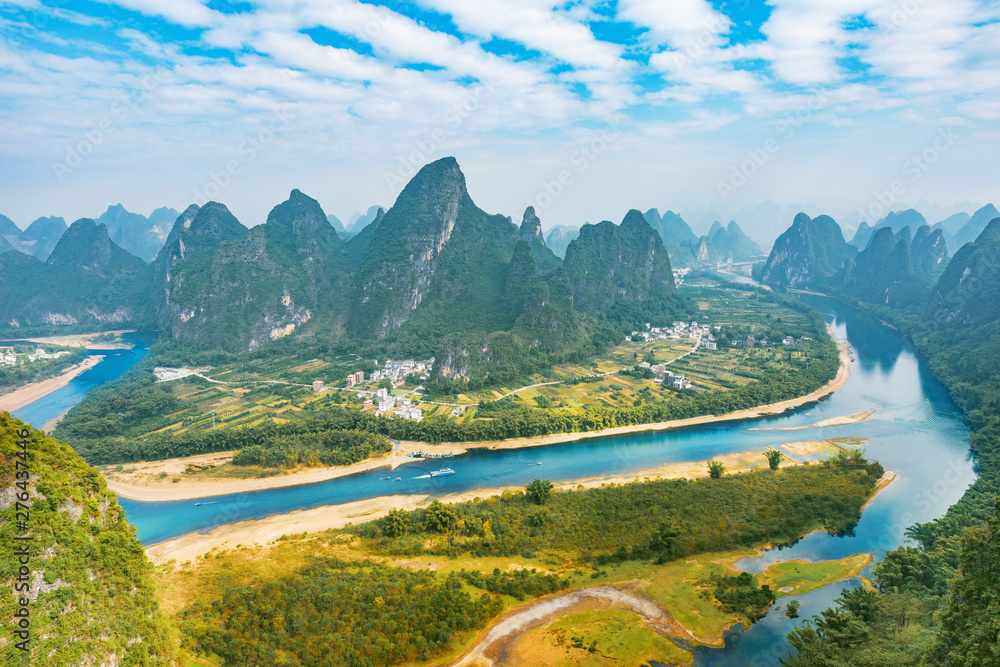 Li River and Karst mountains near Yangshuo. Guangxi Province. China.