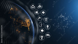 Earth Green Energy Infographics Half Orb Night White Icons Place Your Own Text