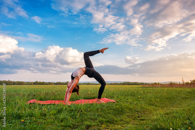 yoga practice on green meadow